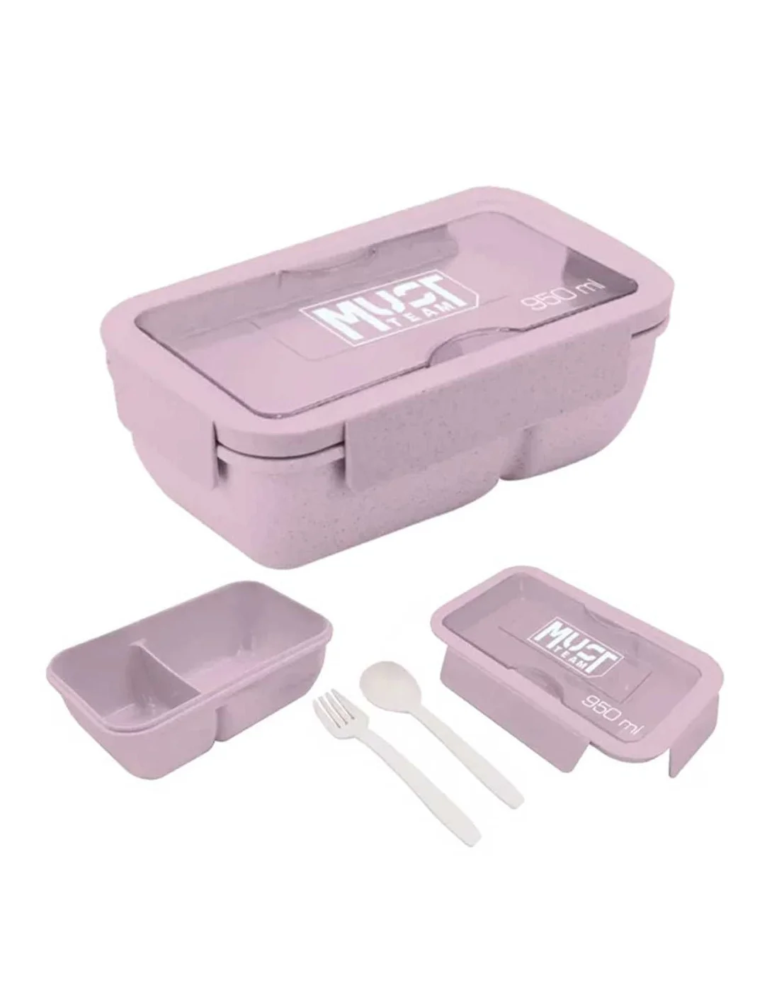 Le récipient alimentaire Must de 950 ml avec fourchette et cuillère en 3 couleurs, adapté aux adolescents et aux adultes, se distingue par son matériau de construction en blé durable et sa fermeture hermétique qui garde les aliments frais, savoureux et sûrs au bureau, au travail, en sortie et en voyage !